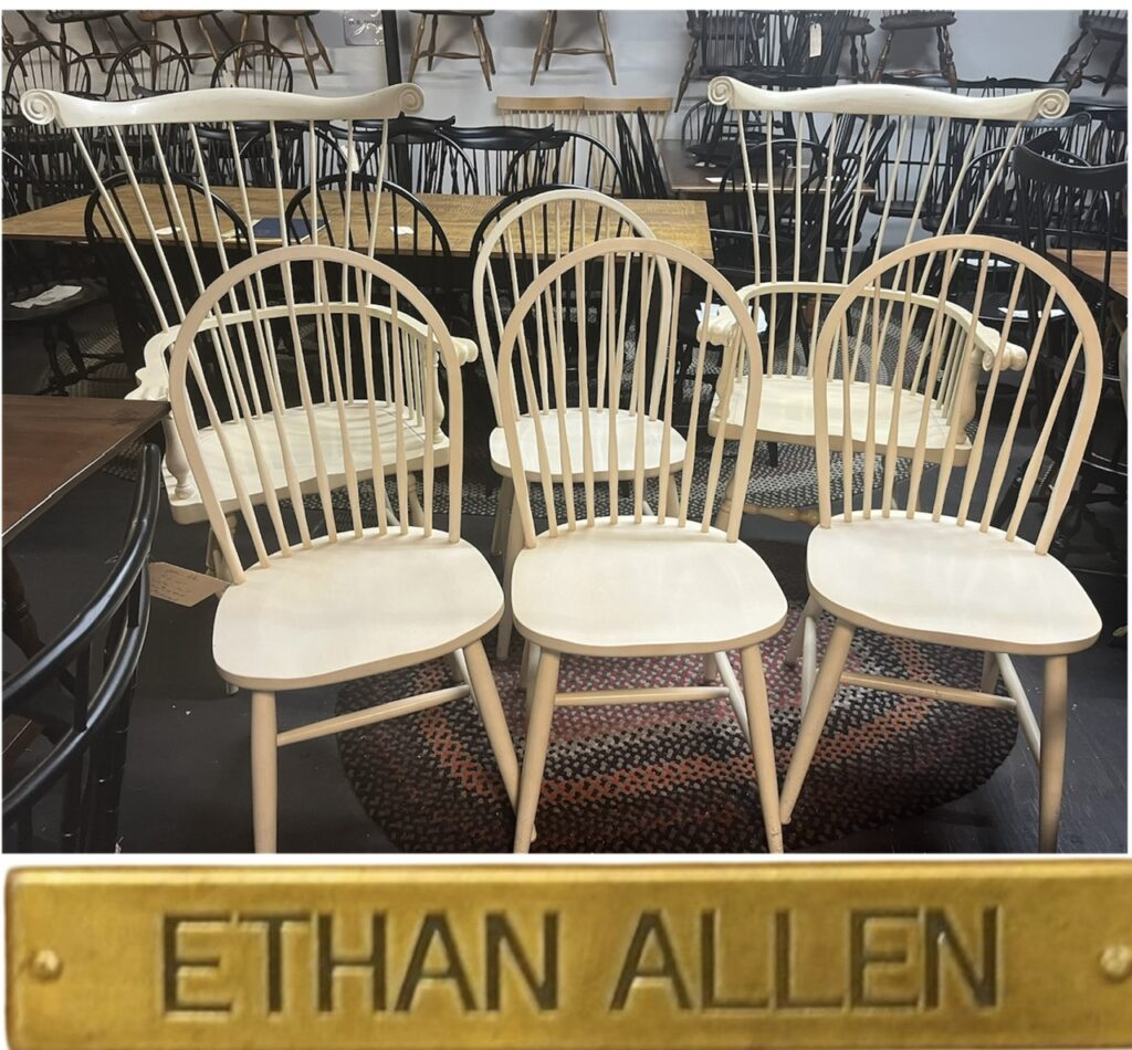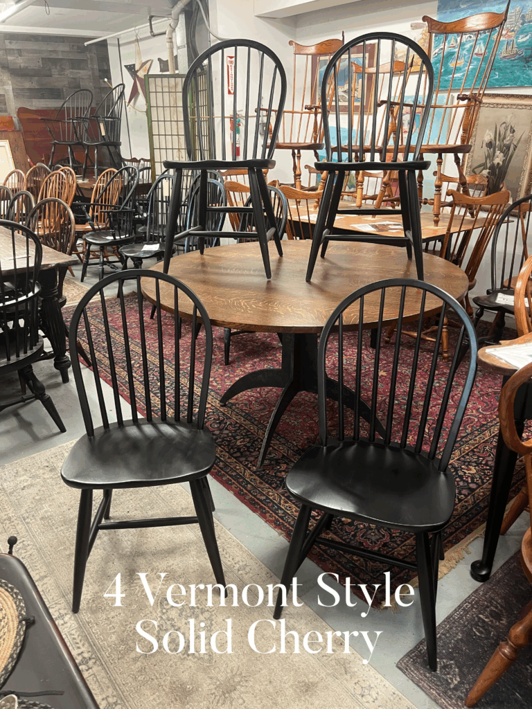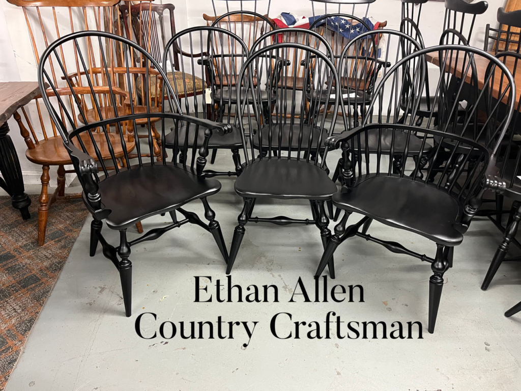 ** Please be advised we have no “new” furniture, we sell vintage, expect scratches and wear. ** I have many sets of vintage American made Windsor chairs in original finish and in paint, ready for local pickup. Please see updated store policies/shipping page.